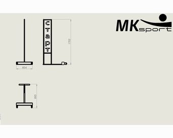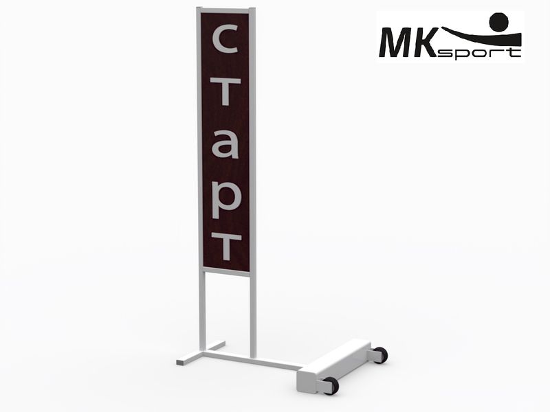 Стойка предназначена для обозначения зоны старта и финиша и может быть использована для оборудования беговых дорожек на стадионах и спортивных площадках. Стойка изготовлена из профильной трубы 25*25*1,5 мм. На основании имеется противовес, выполненный из профильной трубы 100*100*3 мм, набитой песком и заваренной с двух сторон. Экран изготовлен из влагостойкой ламинированной фанеры, надпись выполнена с помощью белой клейкой ленты. Стандартный цвет изделия белый.