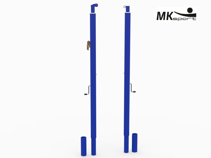 Высота сетки регулируется в диапазоне 2150-2500 мм. Стабильное ее натяжение обеспечивает храповый механизм. Такая система является наиболее простой, но в то же время функциональной и долговечной. Конструкция стоек позволяет быстро установить их на игровое поле в начале матча и убрать их по его завершении, закрыв стаканы крышками. Металлические стойки проходят двойную покраску: антикоррозийным цинкосодержащим грунтом и порошковой полимерной краской.